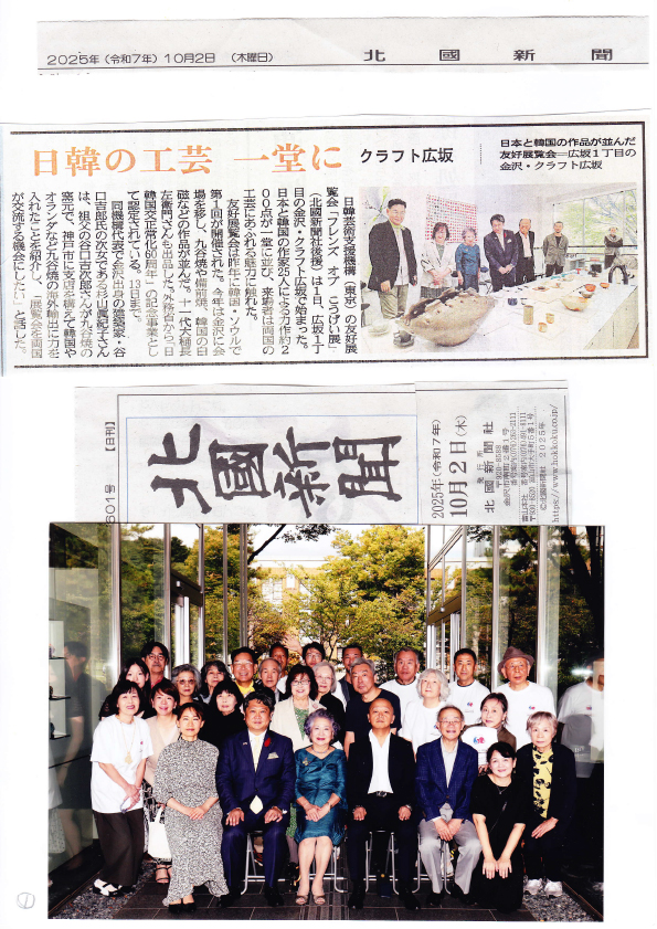 第2回 フレンズ オブ こうげい展・金沢展は、金沢市クラフト広坂ギャラリーにて、村山卓金沢市長と韓国のカンヨンヒ様のご臨席のもとに、2025年10月1日に初日を迎えました。