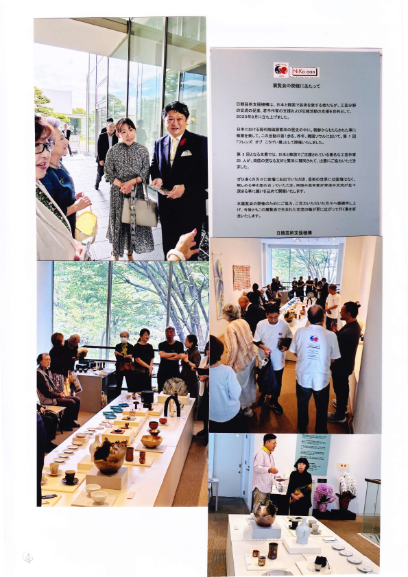今年は韓国のソウルで、来年は日本の金沢で、両国の現代工芸作家による展覧会の開催をいたします。ぜひ多くの方々に この展覧会にご来場いただいて、現代工芸作品の中に潜む伝統技術と、現代の生活の中に生きる工芸の美をご覧いただ いて、両国間の友好が更に深まる事を願っています。